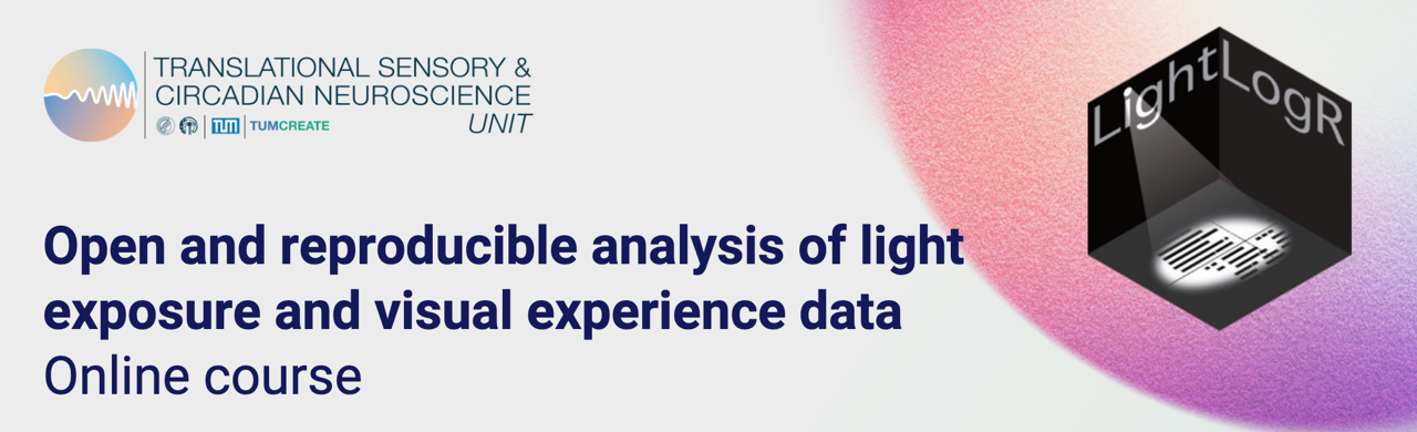 Dear colleagues, We invite you to join the Open and reproducible analysis of light exposure and visual experience data online course—a free, live series for researchers analyzing wearable light and visual experience data in R with the open-source LightLogR <https://tscnlab.github.io/LightLogR/> package. The series offers two tracks (Beginner and Advanced), each delivered as a two-part course via Zoom. To accommodate global time zones, every session will be offered twice on the same day. Register here <https://tum-conf.zoom.us/webinar/register/WN_xGoHi1i_Sz2flC6-qGcLoQ#/registr...> Beginner Track Tuesday, 7 October 2025 Wednesday, 4 March 2026 Topics: tidy data workflows, preprocessing, metric calculation, visualization, merging auxiliary data, and photoperiod analysis Advanced Track Tuesday, 9 December 2025 Wednesday, 6 May 2026 Topics: merging light with sleep and auxiliary streams, advanced visualizations, conditional metrics, time-zone handling, and spectral/distance measures Format 90-minute live webinars (introduction, demonstration, Q&A) Offered twice daily: 08:30–10:00 and 18:00–19:30 CET/CEST Dedicated Q&A with the package developer and maintainer Certificate of participation (micro-credential) awarded upon completion of both parts in a track These tutorials are practical, reproducible, and interactive, with ready-to-use code snippets and example datasets. Detailed learning outcomes are provided in the attached PDF. About the developer / instructor Johannes Zauner is a postdoctoral researcher in circadian data science at the Translational Sensory & Circadian Neuroscience Unit (MPS/TUM/TUMCREATE) <https://www.tscnlab.org/> at the Technical University of Munich and the Max Planck Institute for Biological Cybernetics. He holds a PhD in Human Biology and is currently focused on developing software tools for analyzing data from wearable light loggers. Best wishes, Manuel Spitschan PhD & Johannes Zauner PhD