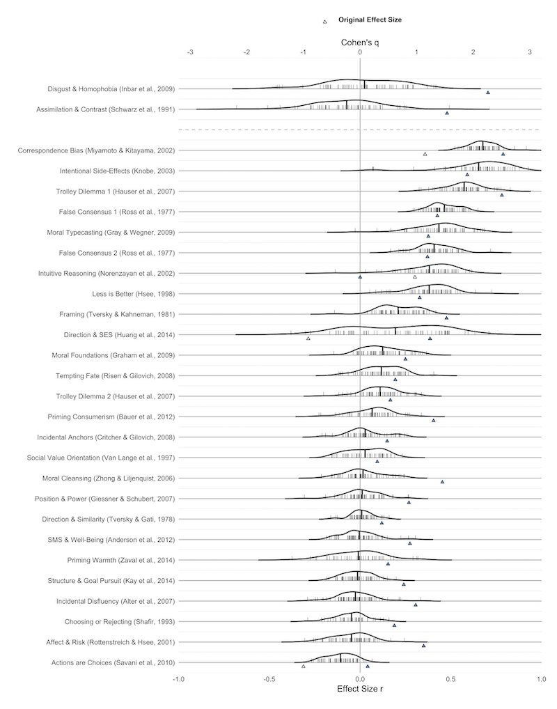 [News from our website: https://www.osc.uni-muenchen.de/news/manylabs2/index.html] # Many Labs 2: Massive replication project released in psychology An international team of researchers in the field of psychology has published a massive new study in the journal Advances in Methods and Practices in Psychological Science. More than 15,000 experimental subjects took part in the project, the purpose of which was to repeat 28 psychological studies that have already been published in the literature. The outcome of their efforts was a sobering one: the results of only 14 could be reproduced. In all, 60 research groups working at institutions all over the world were involved in the replication study, including one led by OSC member Dr. Felix Schönbrodt of the Faculty of Psychology and Educational Sciences at LMU. Read the full story at the LMU press release [German](https://www.uni-muenchen.de/forschung/news/2018/schoenbrodt_studien.html) / [English](https://www.en.uni-muenchen.de/news/newsarchiv/2018/schoenbrodt_reproducibil...). More information on the project, which is one of the largest replication efforts ever in psychology can be found here: https://cos.io/our-services/research/many-labs-2-project-overview/  ---  http://www.osc.lmu.de/ Join our email newsletter: https://lists.lrz.de/mailman/listinfo/lmu-osc Follow us on Twitter: https://twitter.com/lmu_osc