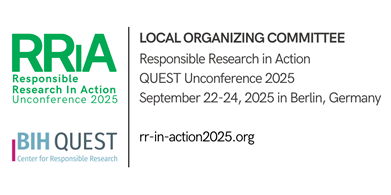 Responsible Research in Action -RRiA- Unconference 2025 - A multi-stakeholder unconference to improve research culture and practice. September 22-24, 2025 in Berlin, Germany The RRiA Unconference 2025 Unconferences are participant-driven, interactive meetings designed to maximize the informal exchanges and stimulating discussions that typically occur during networking breaks at traditional conferences. At the RRiA, registered participants will work in transdisciplinary project teams to co-create outputs leading to actionable solutions to improve research culture and practice. Potential outputs might include toolboxes, tools, grass roots initiatives, recommendations, or networks. Call for projects The call for up to 10 projects to be addressed during the RRiA Unconference 2025 is open. Deadline for submission of applications is February 9th, 2025. Persons submitting project ideas that are selected by the Programme Organizing Committee will act as Project Team Leader. Registration as regular attendee Even if you do not have your own idea, but are enthusiastic and motivated to contribute to the realization of a project, you can join the RRiA Unconference 2025 as a regular attendee. Registration will open by the end of April. Be part of the change We encourage you to submit your project ideas or to participate in the conference and be part of the movement to improve research culture and practice! Important links RRiA website: RRiA website<https://rr-in-action2025.org/> Register to get the RRiA Newsletter and stay updated: Register to RRiA Newsletter<https://info.rr-in-action2025.org/forms/nfrm_weLJnLY5> Information for project application at RRiA: Information for project application at RRiA<https://rr-in-action2025.org/info-for-application/> RRiA on QUEST LinkedIn: RRiA on QUEST LinkedIn<https://www.linkedin.com/feed/update/urn:li:activity:7288539451201359874> Local Organizing Committee [RRinAction_LOC Signature (1200 x 600 px) Update 2025] Programme Organising Committee [cid:image002.png@01DB73D3.F8DF5080] -- Dr. Malika Ihle (she/her) (pronounciation<https://namedrop.io/malikaihle>) LMU Open Science Center Coordinator Website: https://www.osc.lmu.de<https://www.osc.lmu.de/> Mailing list: https://lists.lrz.de/mailman/listinfo/lmu-osc Computing skill self-paced tutorials: https://github.com/lmu-osc Workshops material: https://osf.io/zjrhu/ Bluesky: https://bsky.app/profile/lmu-osc.bsky.social LinkedIn: https://www.linkedin.com/company/lmu-open-science-center Mastodon: https://scicomm.xyz/@lmu_osc